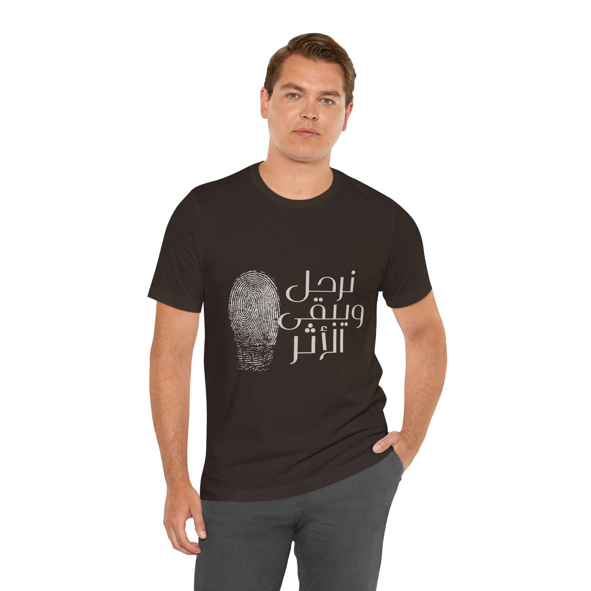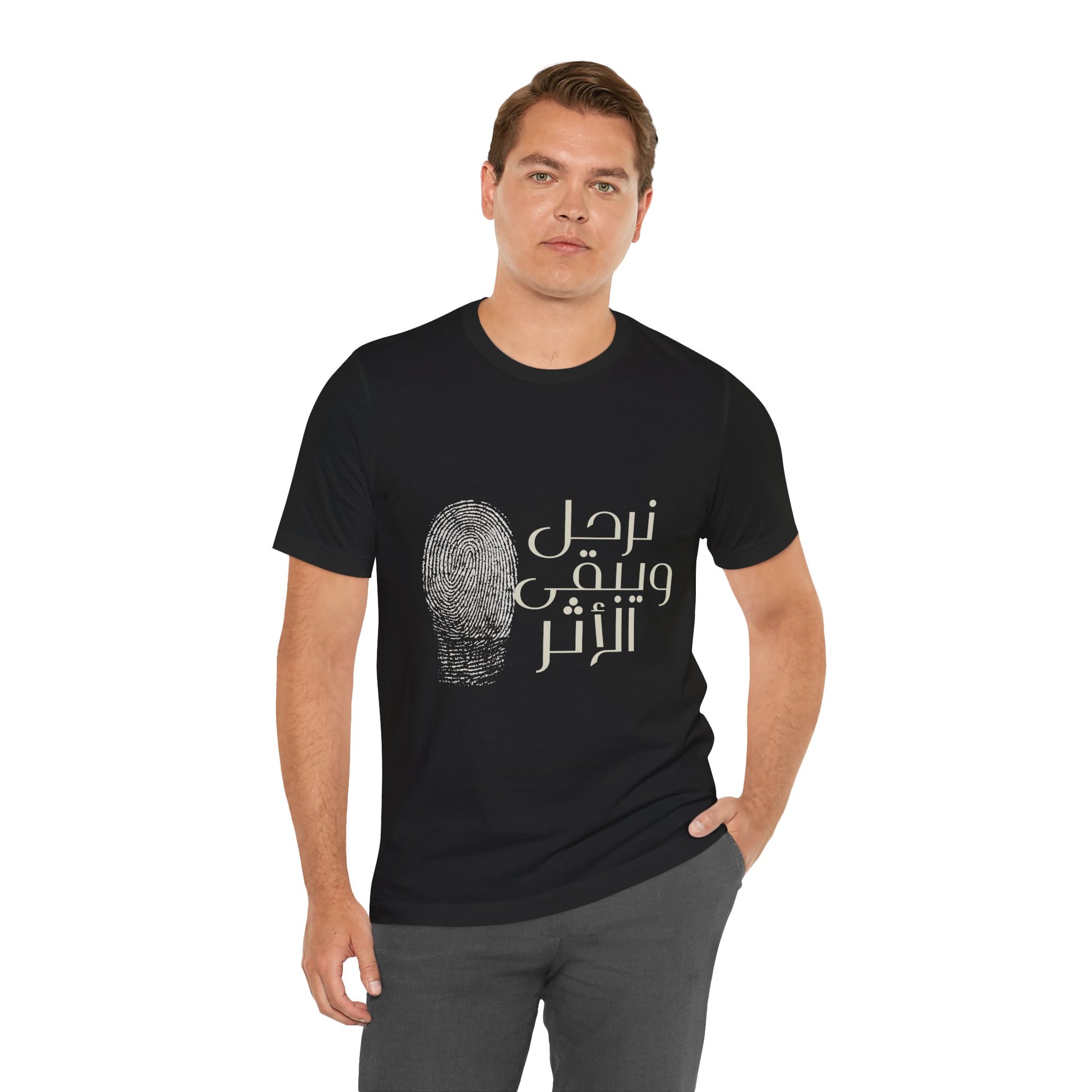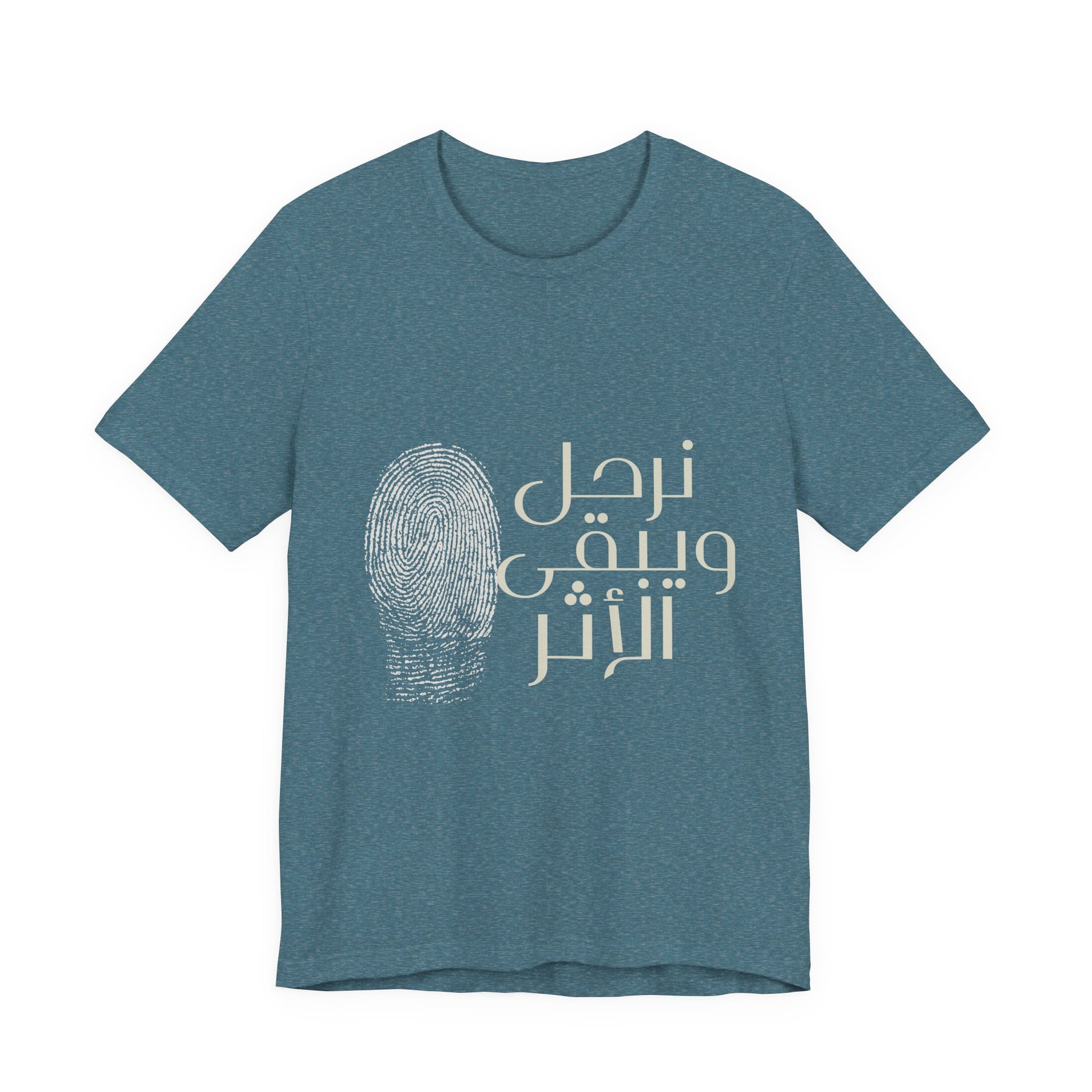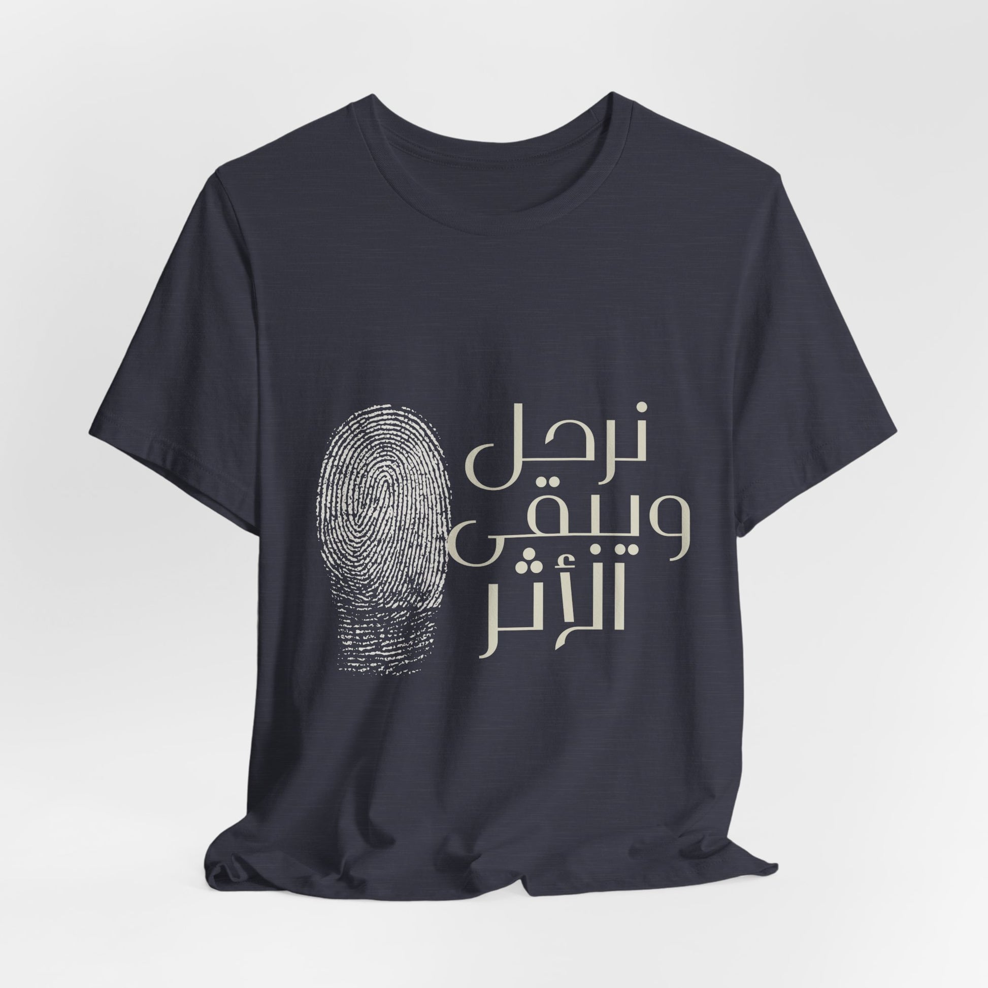 Part of our Everyday collection, a soft, lightweight tee printed with the Arabic phrase نرحل ويبقى الأثر — "We depart, but the impact remains." The understated design sits quietly on the chest, inviting reflection and conversation. Wear it on slow mornings, at community gatherings, or while wandering city streets.